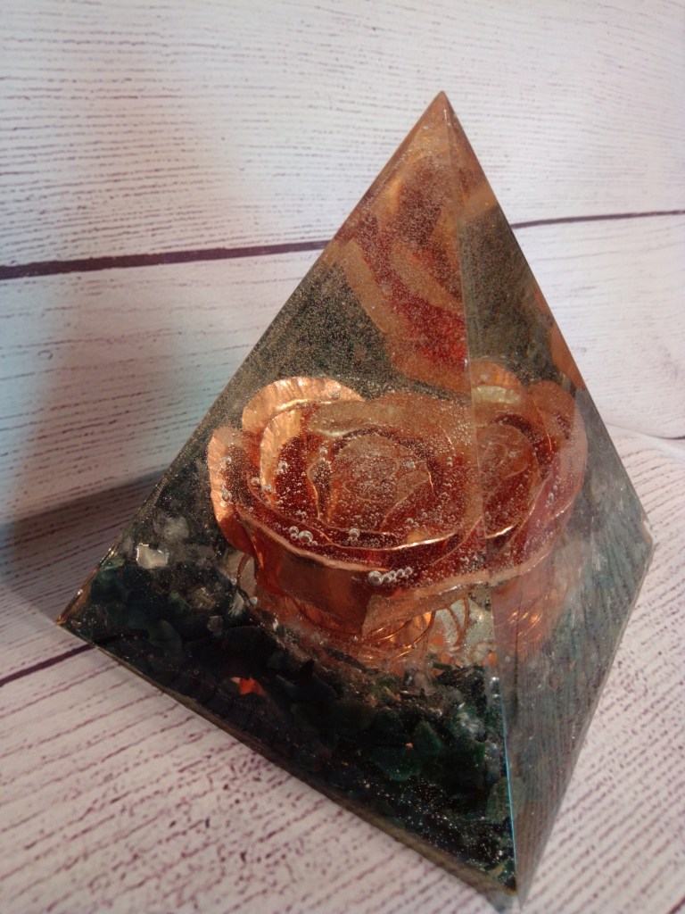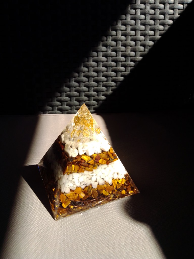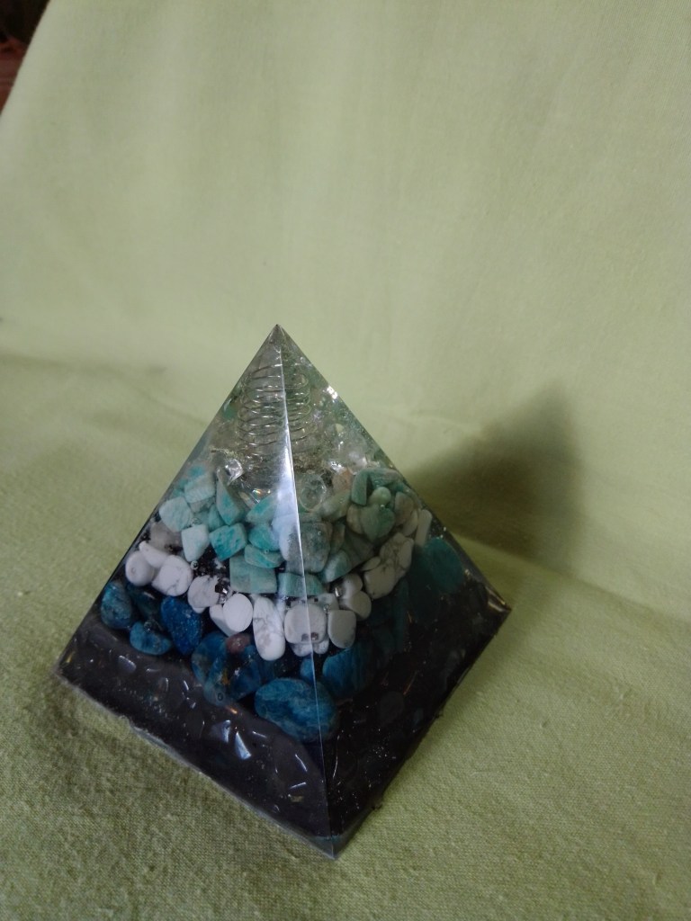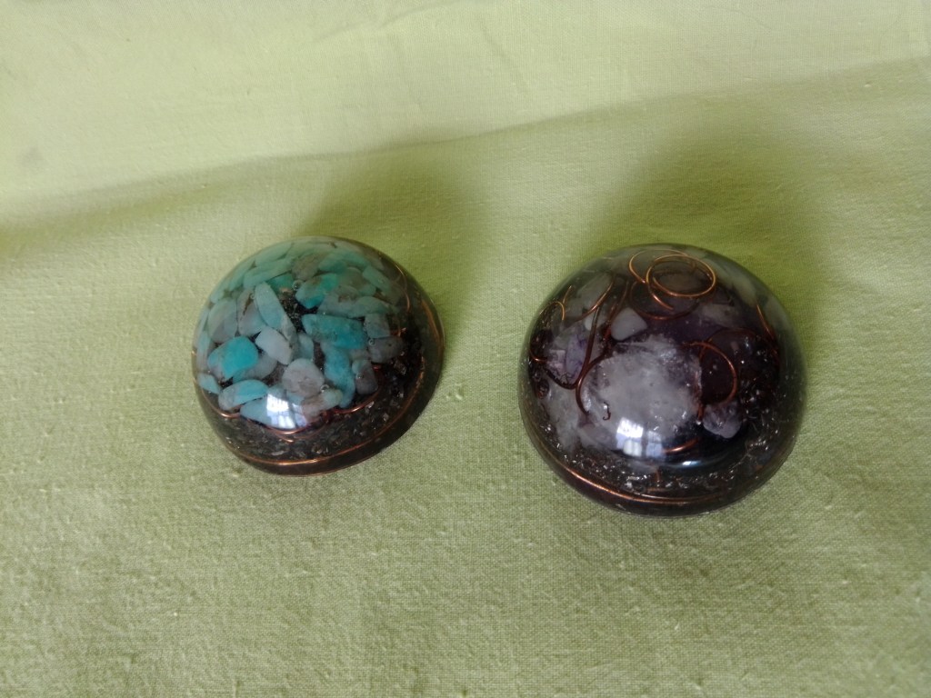 Die Grundbausteine für einen Orgonit sind in Kunstharz gegossene Halbedelsteine (auf jeden Fall ein Bergkristall) und Metall (mindestens eine Spirale).