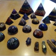 Die Grundbausteine für einen Orgonit sind in Kunstharz gegossene Halbedelsteine (auf jeden Fall ein Bergkristall) und Metall (mindestens eine Spirale).